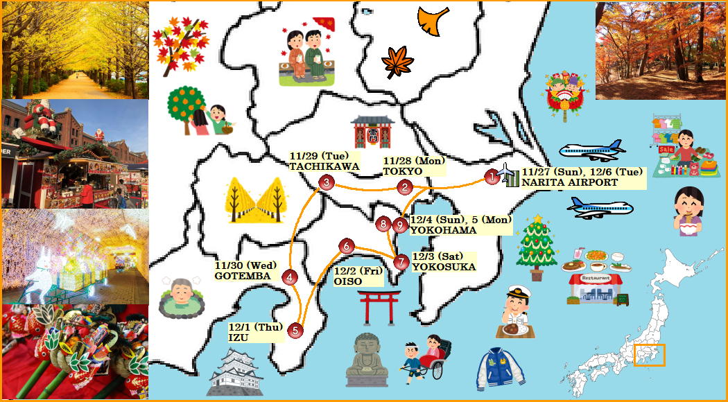 | This is a tour made from a customer's idea. Enjoy the autumn leaves in Tokyo, shopping and the amazing winter illumination lights. Where dinner is not included there are many restaurants near the hotel so you can freely select the restaurant and enjoy what you want to eat. |