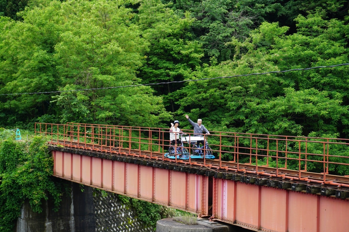 guests to ride on the decommissioned Kosaka Railway tracks. Along the way,