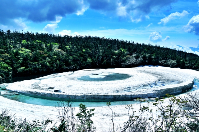 hotel go to hiking trail at Mt. Zao, see the Zao Okama Crater. The color of the lake changes
