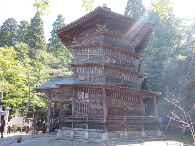 From the hotel we go to see the Aizu Festival. It is one of the largest fall events in the Aizu area. The main feature of the festival is the Aizu Samurai parade. Each year some 500 people parade through downtown Aizu-Wakamatsu in an event that magnificently recreates the world of samurai. Visitors can enjoy watching the sword dancing of the Byakkotai warriors and sword fight performances given by professional actors, with the castle keep of Tsurugajo in the background. Next we visit Sazae-do. It is a three-storied, hexagonal pagoda with the look of an optical illusion. The double-helix wooden structure is the only one of its kind in the world and has been designated as an Important Cultural Property. Go inside and walk up the winding slope while observing the curved windows. Thanks to its one-way path you never have to pass anyone on your way up or down. Experience the wonder of the one-way spiral path within this strangely distorted interior space. Then we go back to the same hotel. |
